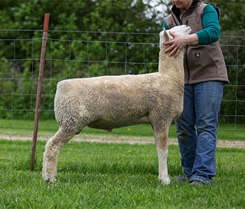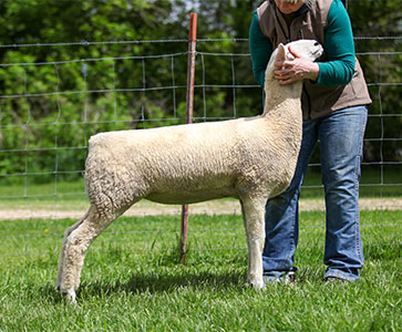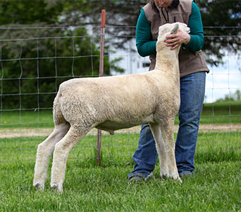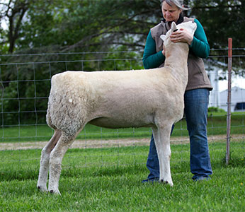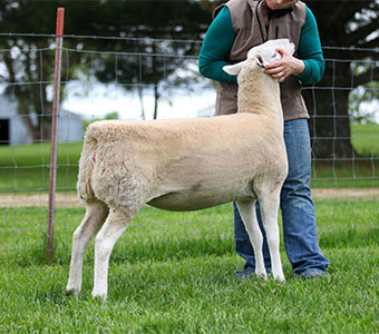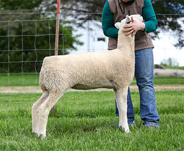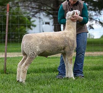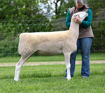 Good, solid correct yearling ewe.